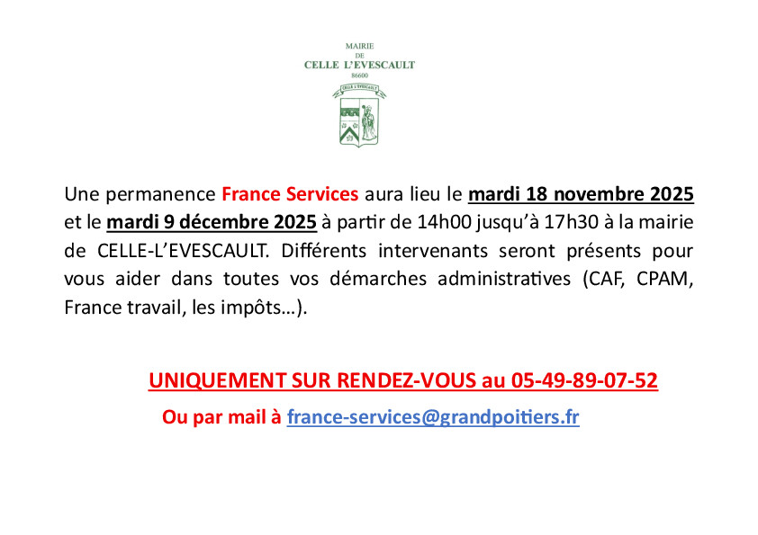 12h00 : cérémonie, discours et dépôt de gerbes au monument aux morts de Celle-L'Evescault suivi d'un vin d'honneur à la salle des fêtes.