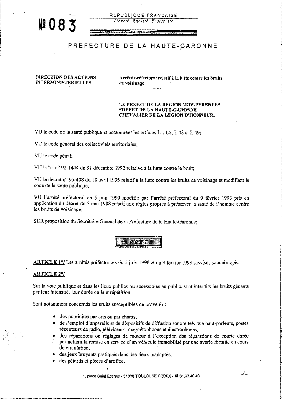 Afin d’appliquer cette philosophie, il convient de respecter l’arrêté préfectoral relatif à la lutte contre les bruits de voisinage. Dans le document joint, vous trouverez dans l’article 5 les horaires à respecter pour les travaux de bricolage et de jardinage par des particuliers à l’aide d’outils ou d’appareils susceptibles de causer une gêne en raison de leur intensité sonore