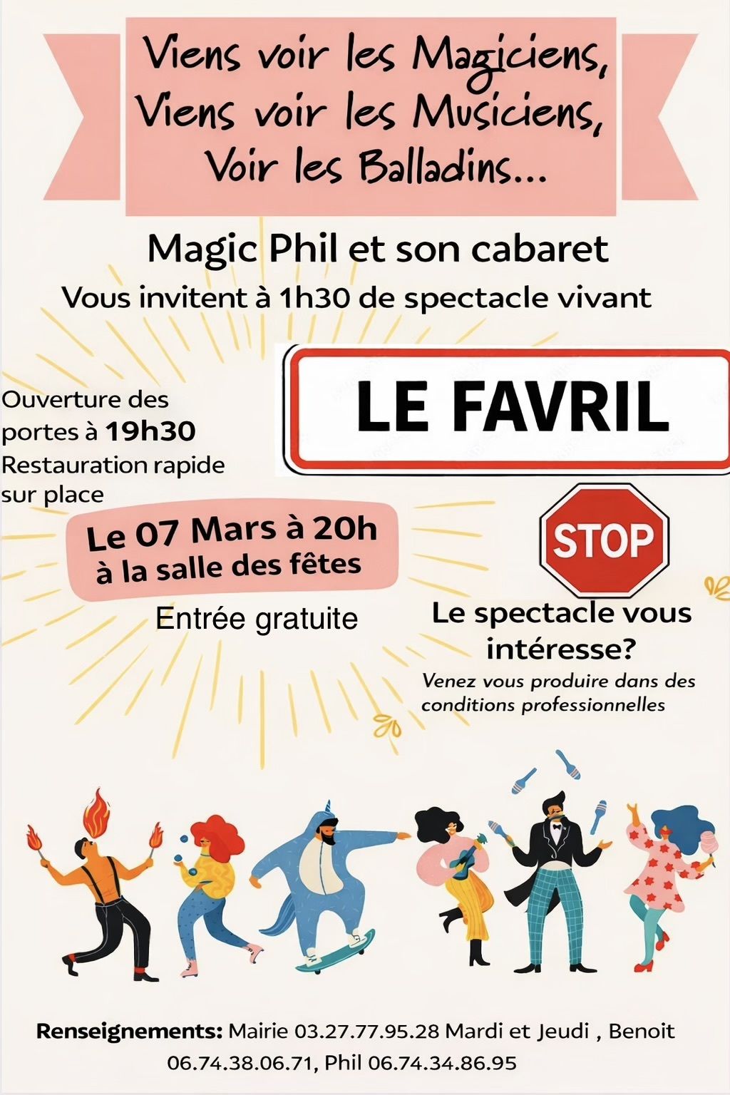 Nous vous attendons nombreux le 07 Mars 2026 à cette soirée spectacle avec des magiciens, chanteurs et danseurs ! 🤹💃
