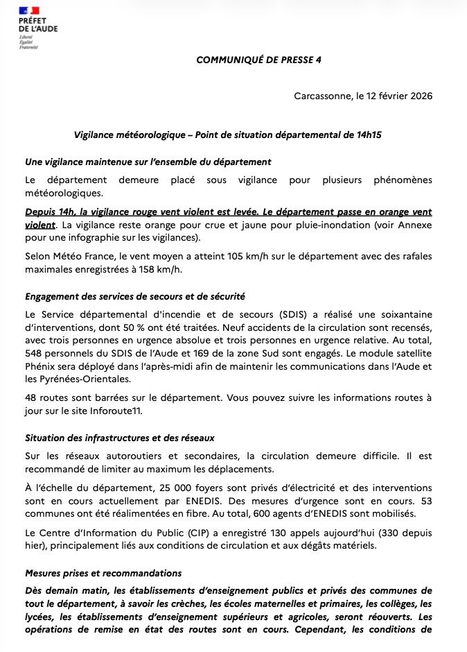 ℹ️ Suivez l'évolution : vigilance.meteofrance.fr - inforoute11.fr