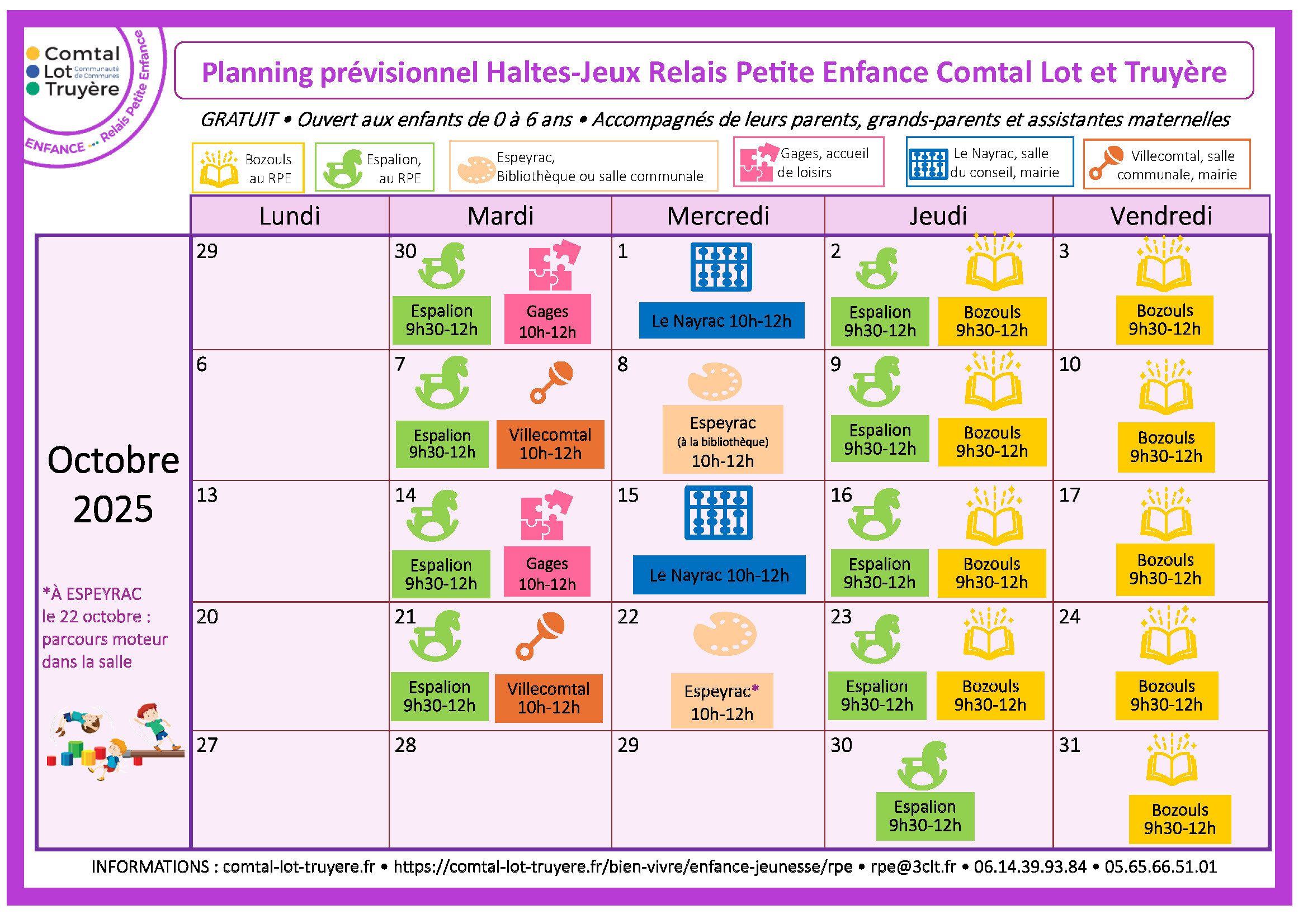 En ce mois d'octobre le Relais Petite Enfance sera présent à ESPEYRAC :