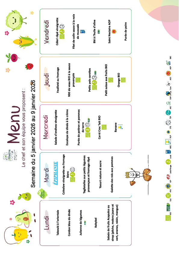 Les menus pour la période du 13 Octobre au 19 Décembre 2025.