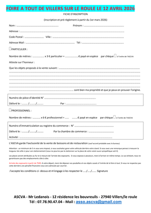 L’ASCVA organise une foire à tout qui aura lieu au stade le 12/04/2026.
