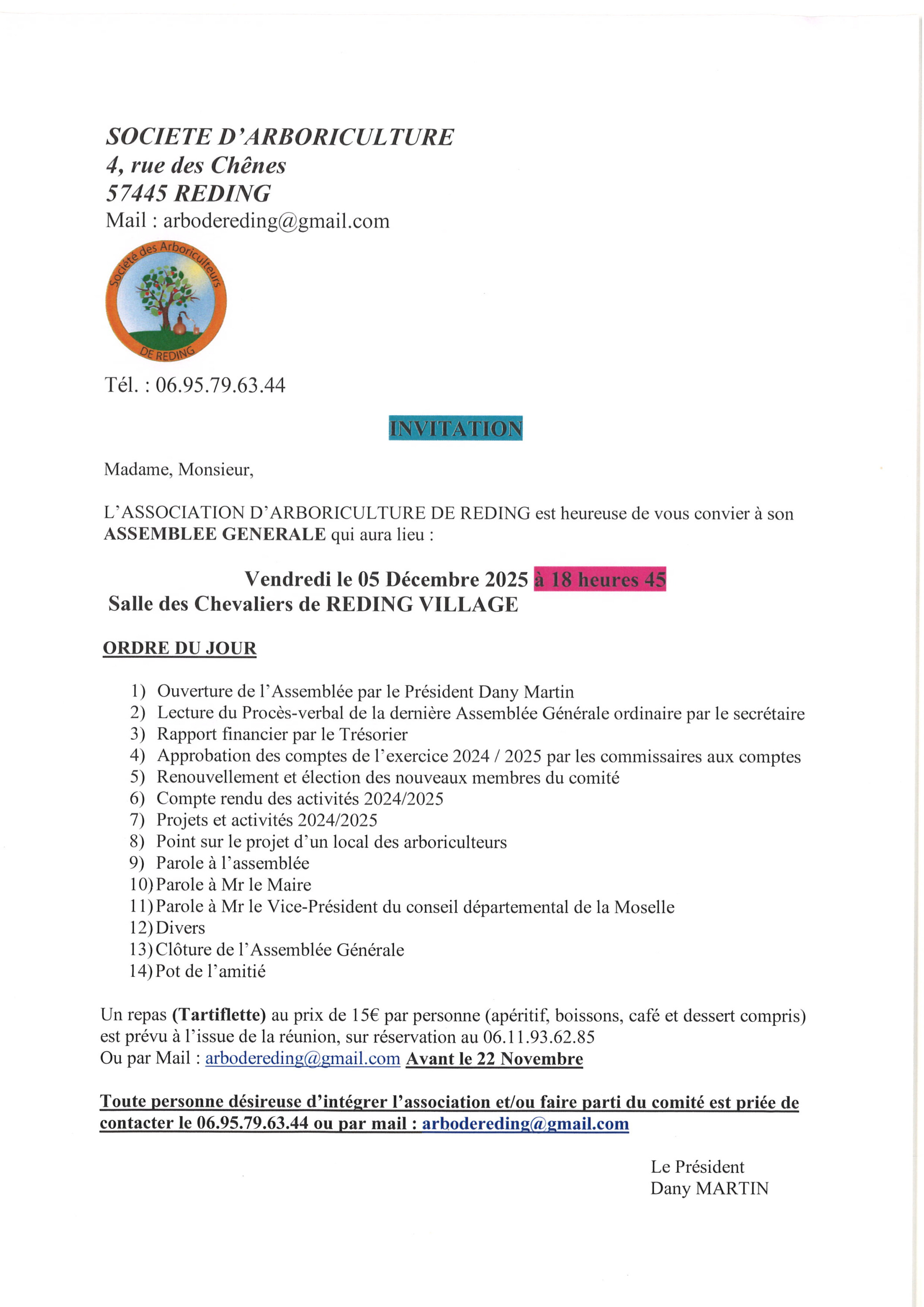 L'Association des arboriculteurs de Réding organise son Assemblée Générale