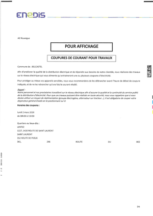 A prendre connaissance du message ci-dessous et se rapprocher de la mairie si besoin