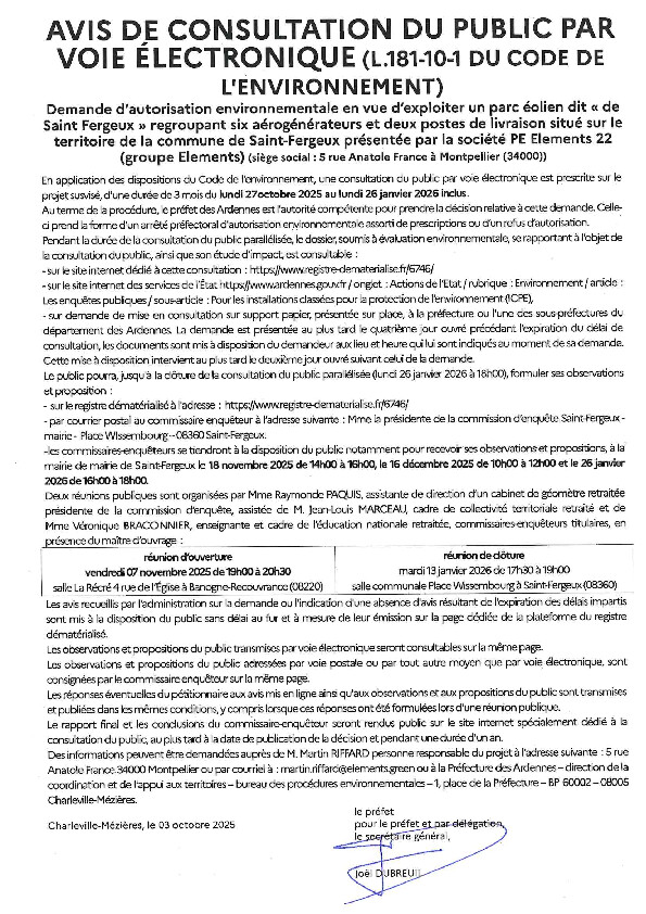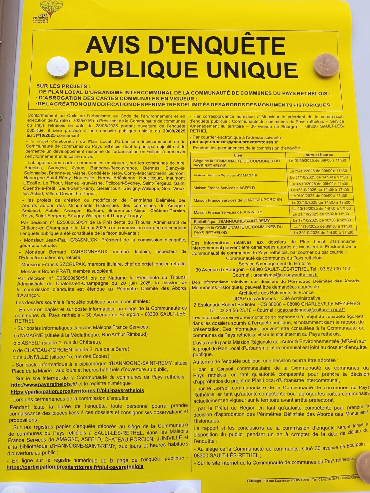 Rappel - fin de l'enquête publique le 30 octobre 2025