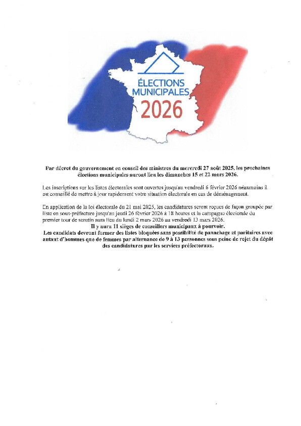 Modification du scrutin municipal pour les communes de moins de 1000 habitants.