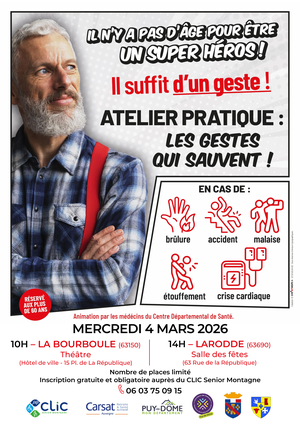 Le Centre départemental de santé (Conseil départemental du Puy-de-Dôme), en partenariat avec le CLIC Senior Montagne, la CARSAT Auvergne, la Commission des Financeurs et les mairies de La Bourboule et Larodde, vous proposent :