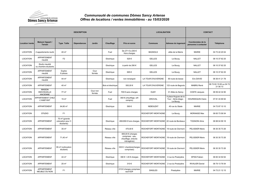 Consultez la Bourse aux locaux vacants de Dômes Sancy Artense