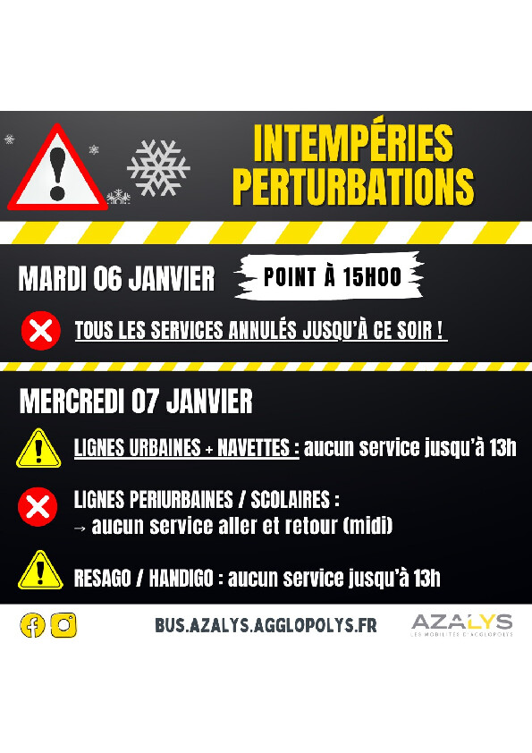Episode de neige collante pour la journée de mercredi 7 janvier suivi d'un épisode de vents violents à compter de jeudi soir qui prendrait fin vendredi 9 janvier en milieu de journée.