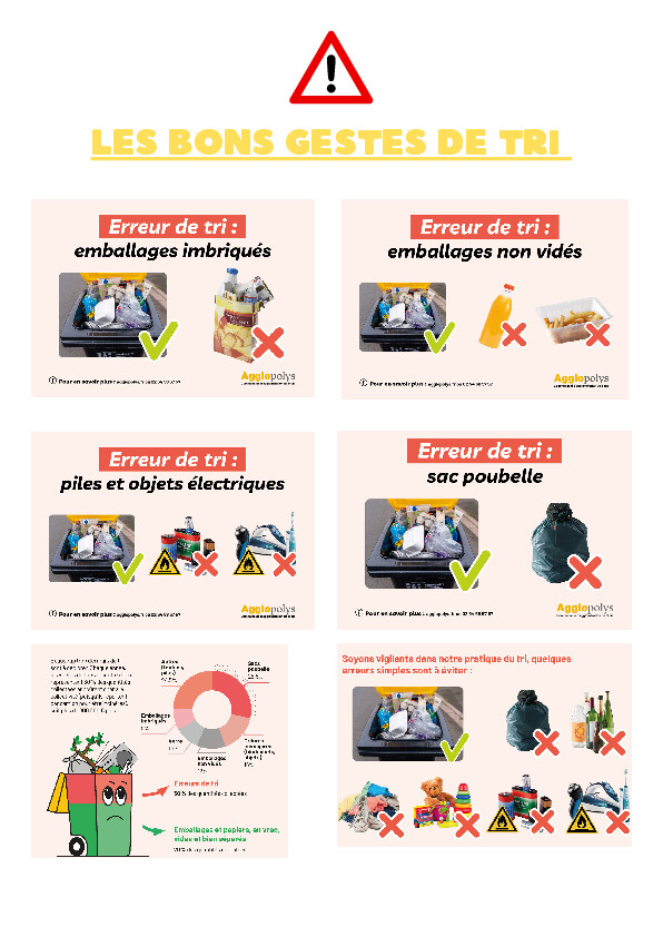 Seuls les emballages et papiers vont dans les bacs de tri. Les emballages doivent être séparés et non imbriqués.