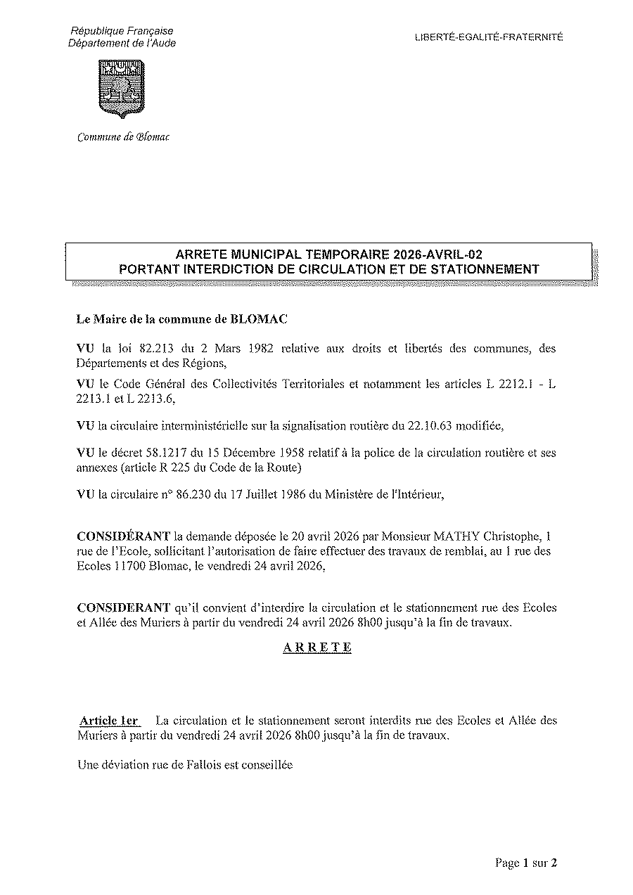 Merci de votre coopération et de votre engagement envers notre beau village de Blomac.