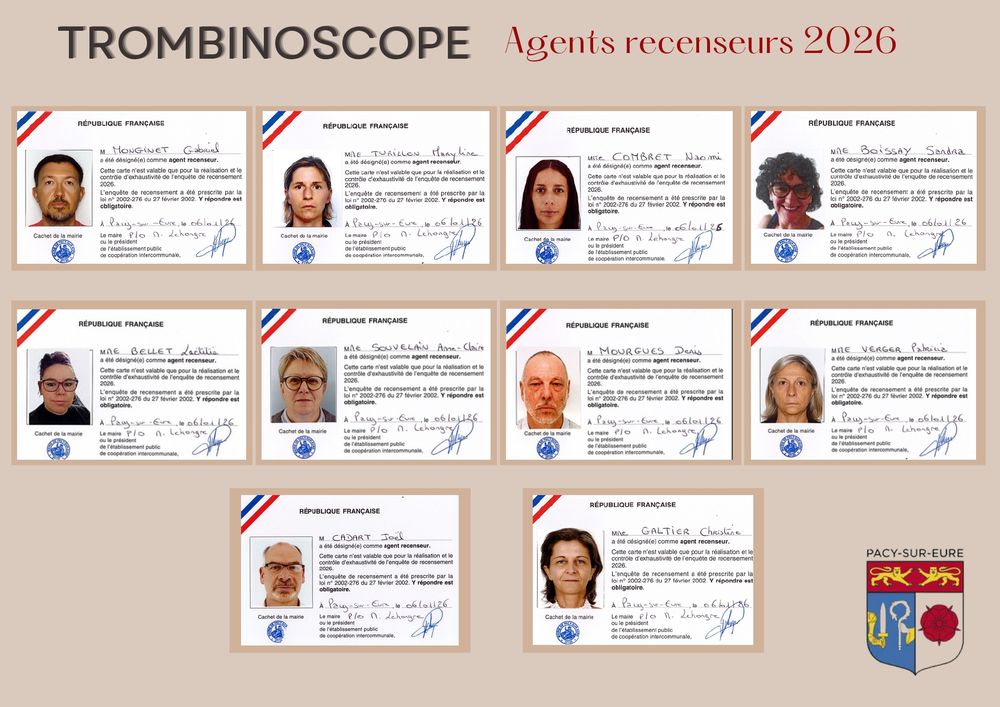 Pour plus de sécurité, le trombinoscope des agents recenseurs vous est proposé ci-dessous. Vous pouvez leur demander leur carte lorsqu'ils se présentent à votre domicile.