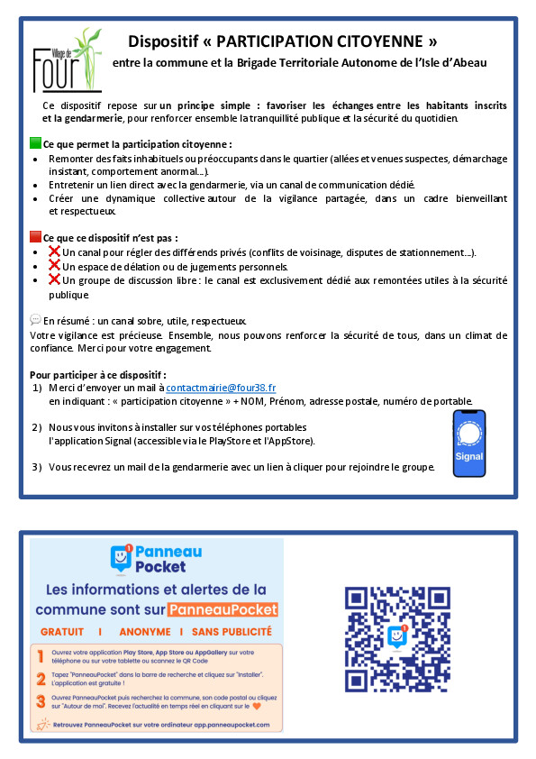 La commune est heureuse de mettre à disposition de ses habitants l’application PanneauPocket. Par cet outil très simple, elle souhaite tenir informés en temps réel les citoyens de son actualité au quotidien, et les alerter en cas de risques majeurs. Cette solution gratuite pour les habitants, sans récolte de données personnelles et sans publicité, permet d’établir un véritable lien privilégié entre le maire et ses citoyens.