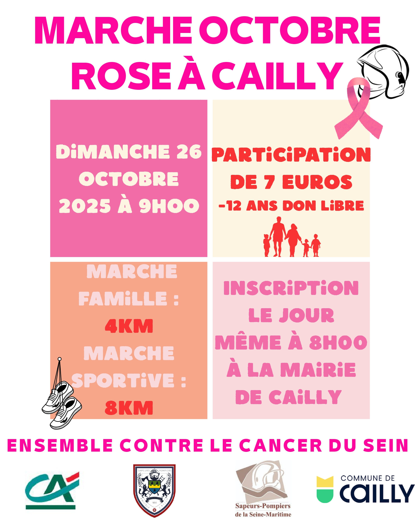 L’Amicale des Sapeurs-Pompiers de Cailly organise une marche Octobre Rose afin de soutenir la lutte contre le cancer du sein.