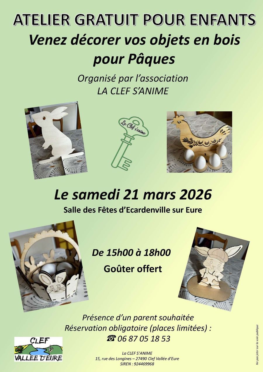 L’association La Clef s’Anime organise un 𝐚𝐭𝐞𝐥𝐢𝐞𝐫 𝐜𝐫𝐞́𝐚𝐭𝐢𝐟 𝐩𝐨𝐮𝐫 𝐥𝐞𝐬 𝐞𝐧𝐟𝐚𝐧𝐭𝐬 !