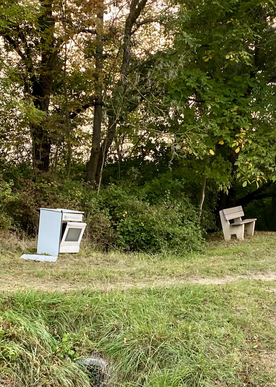 Une vieille gazinière a été jetée sur le bord de la route à l’entrée du village, prête à finir dans le ruisseau 🤬