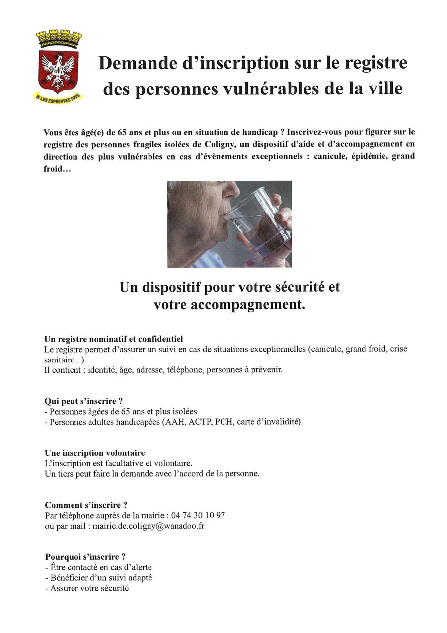un registre est disponible en mairie, et sur le site internet, sur lequel vous pouvez vous inscrire.