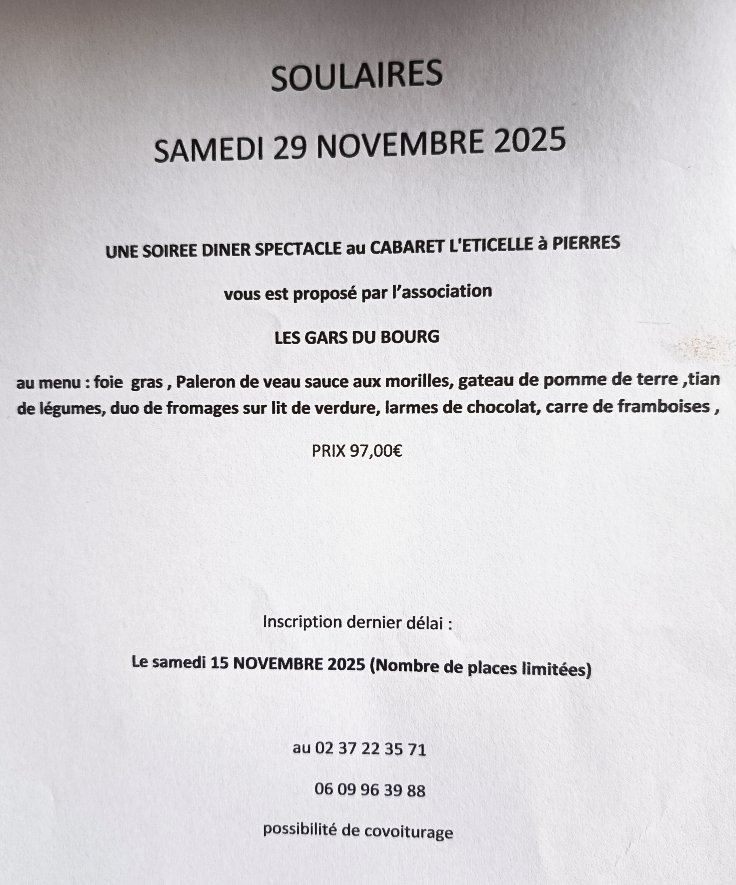 Renseignements et inscriptions par mail amicaledes4villages@gmail.com