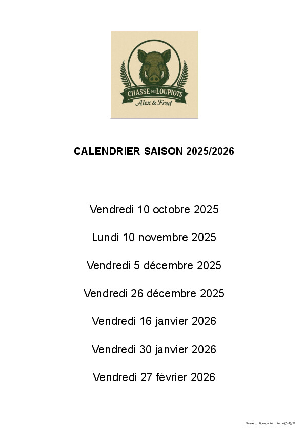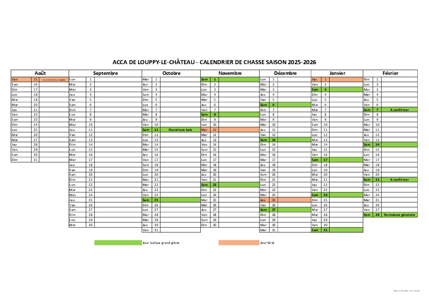 Pour votre information, voici les jours de chasse prévus sur le territoire de Louppy
