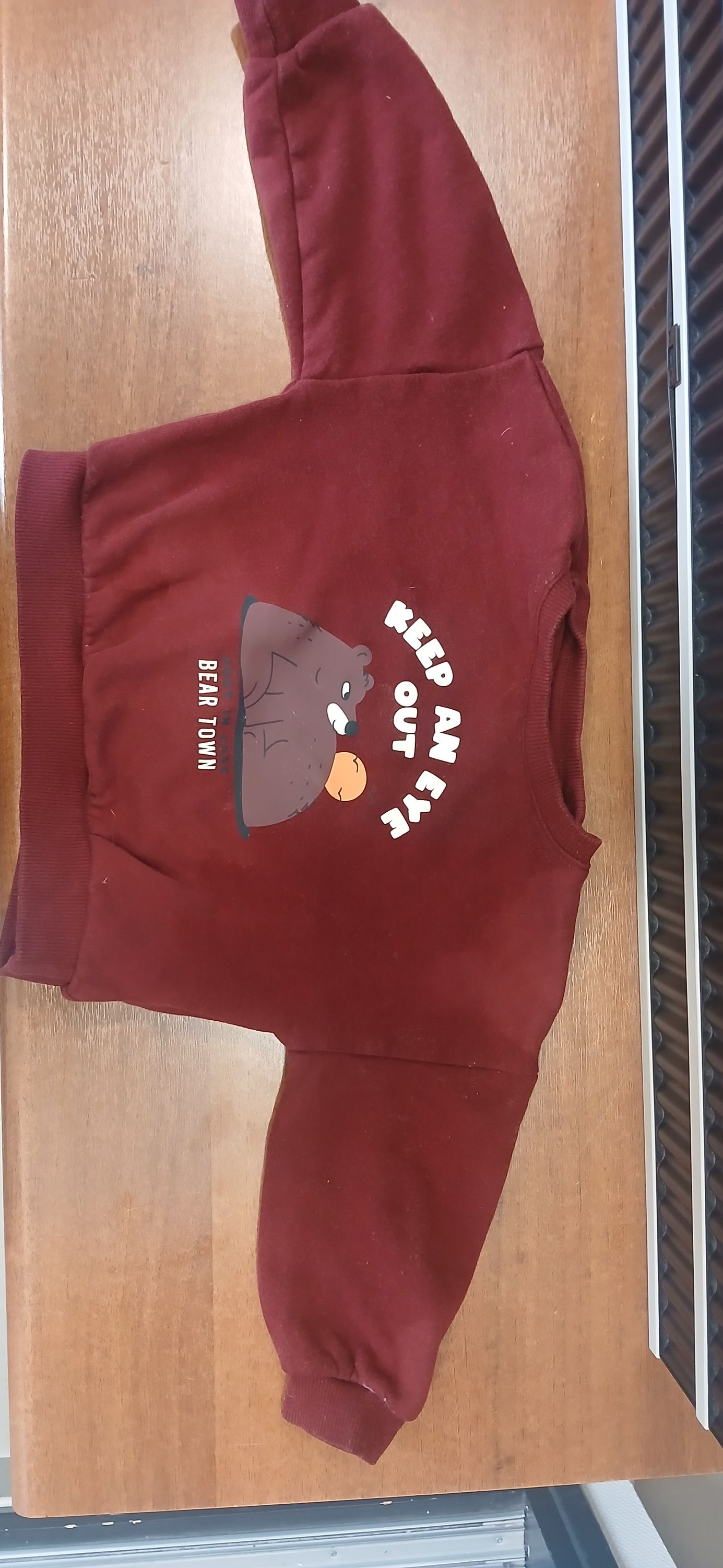 Un petit sweat shirt enfant couleur bordeaux à motif a été retrouvé près du monument aux Morts.