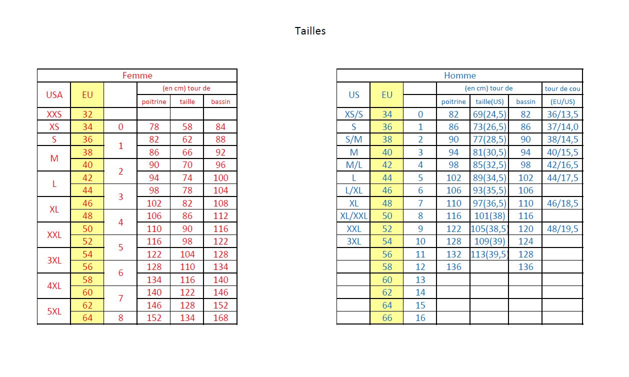 * un tableau reprenant l'ensemble des tailles,