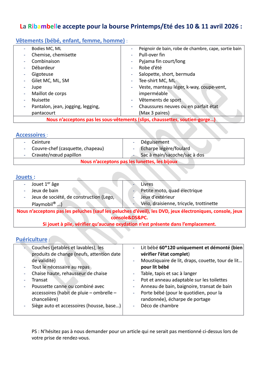 "La Ribambelle prépare sa bourse Printemps/Été tout âge".