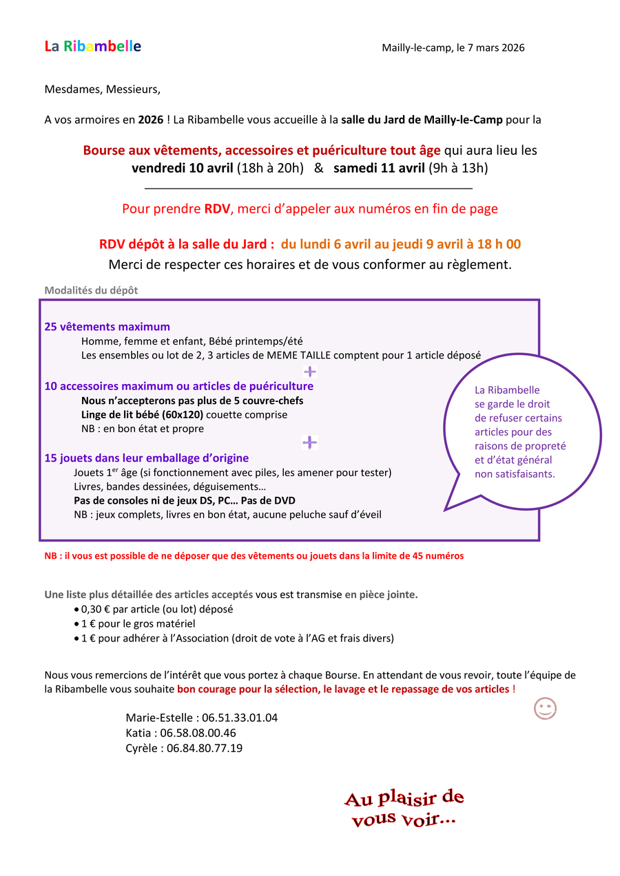 L'équipe de La Ribambelle vous remercie pour votre fidélité et votre soutien.