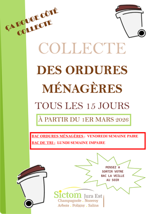 À compter du 1er mars 2026, la collecte des ordures ménagères aura lieu tous les 15 jours.