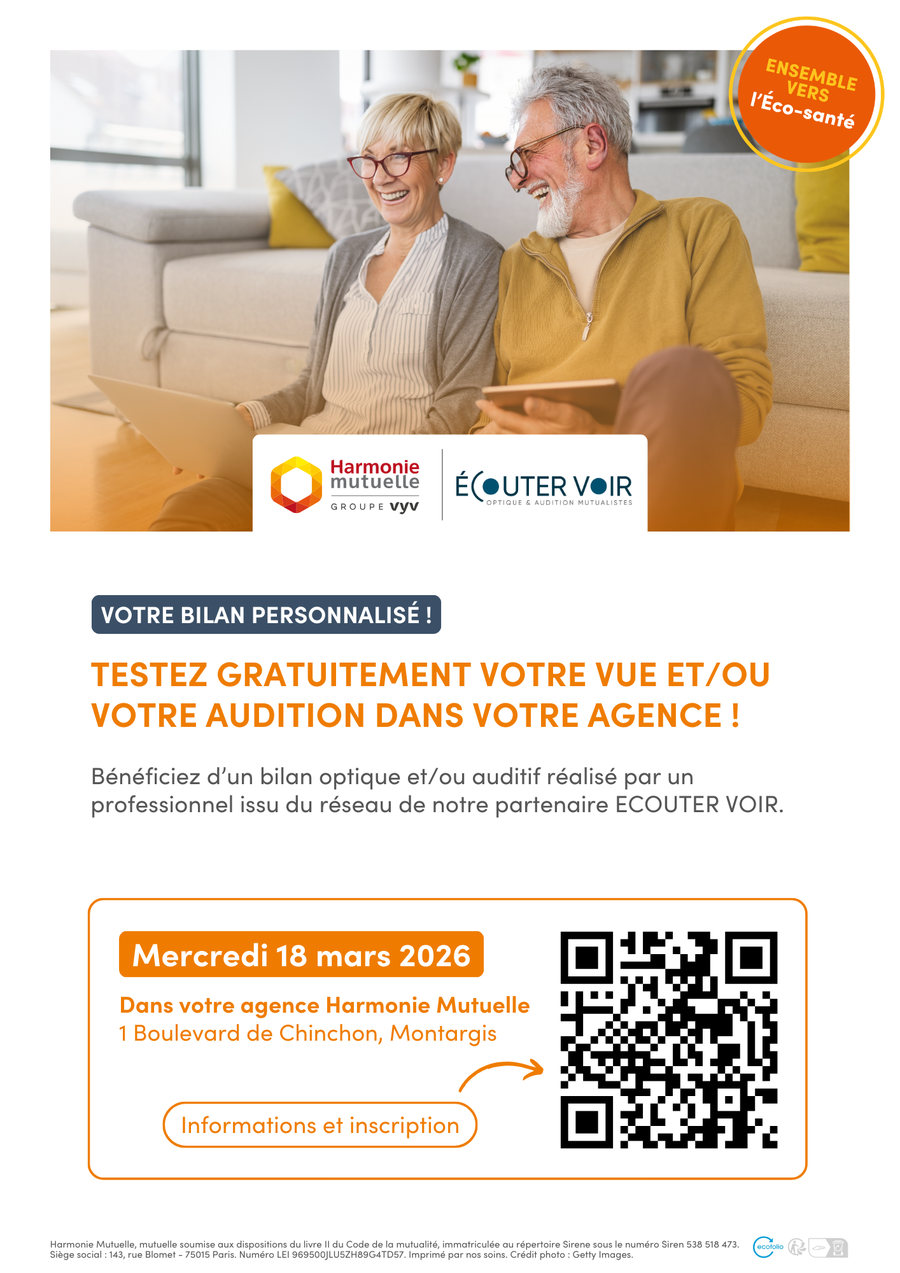 Testez gratuitement votre vue et/ou votre audition grâce à un bilan personnalisé réalisé par un professionnel du réseau ECOUTER VOIR, en partenariat avec Harmonie Mutuelle.