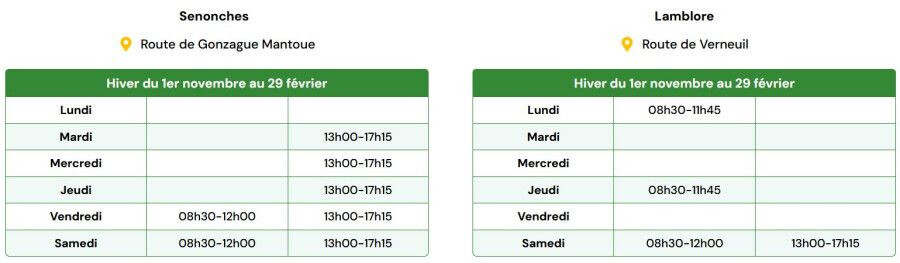 HORAIRES d'HIVER des déchèteries (ci-dessous, et en ligne)