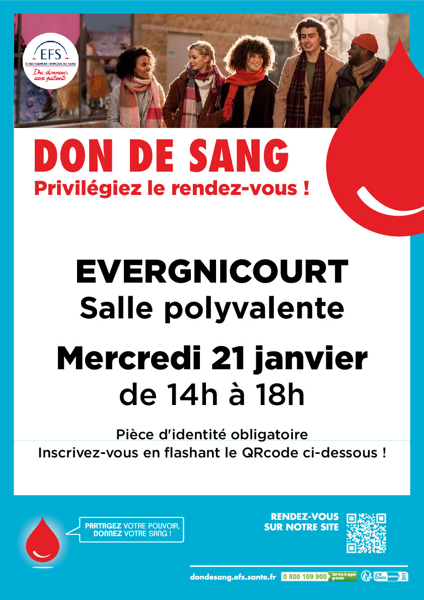 -Le mercredi 21 janvier dans la salle polyvalente d’Evergnicourt, de 14h à 18h.