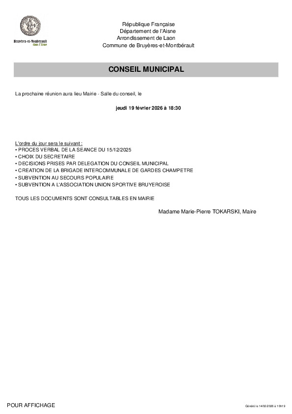 le 6 février 2026 est consultable en mairie pour une durée d’un mois.