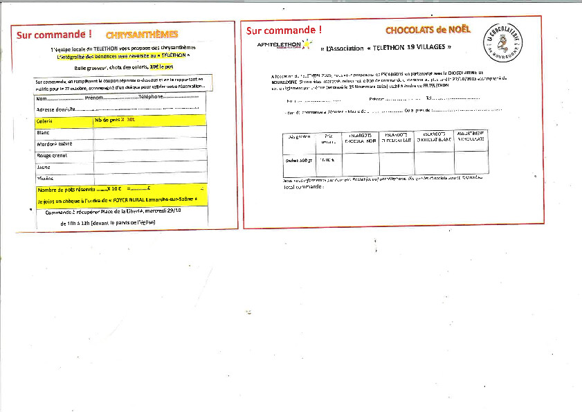 Si vous êtes intéressé(e-s), complétez les bons de commande ci-joints et rapportez-les à la mairie avec votre règlement avant la date butoir(le 26/10)