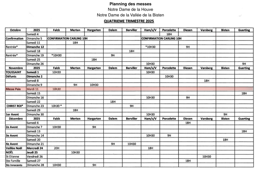 Pour rappel, la messe initialement prévue à 10h30 à Falck le 11 novembre sera célébrée à Hargarten-aux-Mines. ⛪️