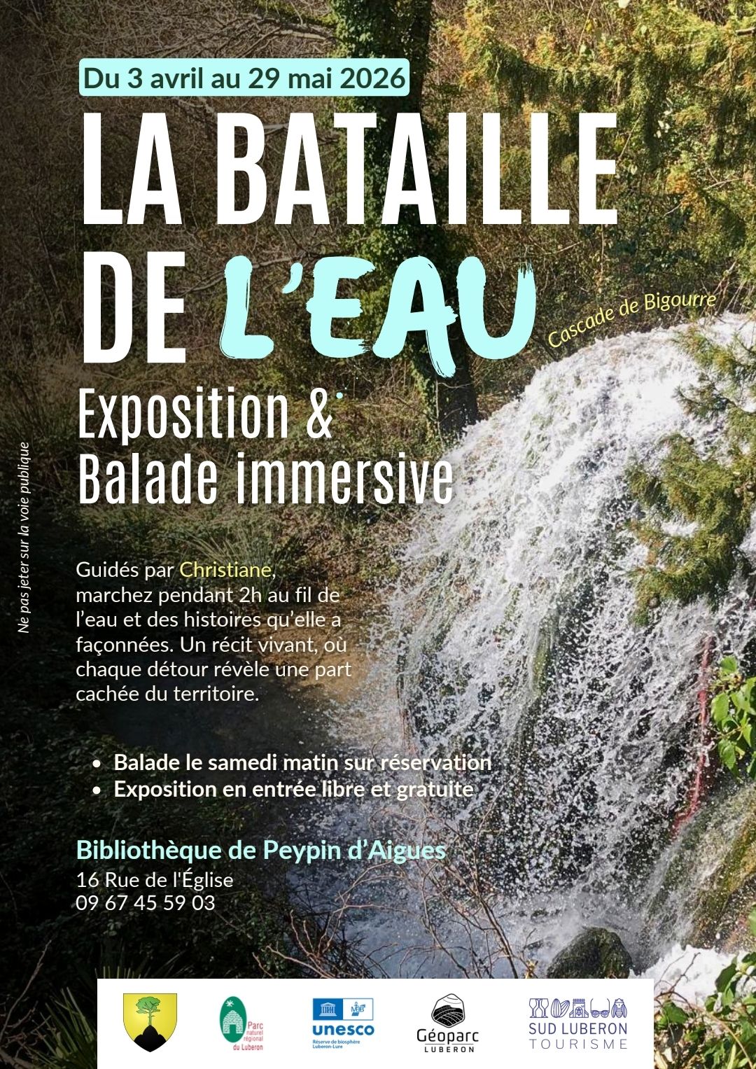Après ses rencontres à la bibliothèque, Christiane vous propose de vous emmener en balade le long du ruisseau des Hermitans pour vous raconter les histoires d'eau qui ont concerné Peypin pendant des siècles. Deux dates vous sont proposées en avril: samedi 11 et samedi 25