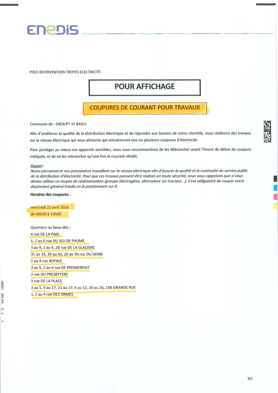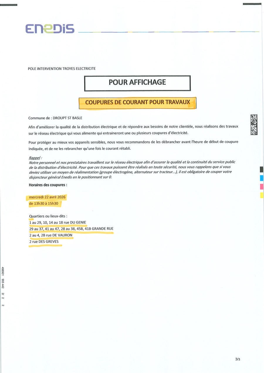 ATTENTION COUPURES DE COURANT POUR TRAVAUX