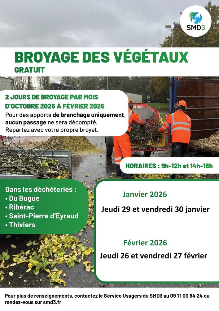 Campagne de Broyage de déchets verts à la Déchèterie du Bugue