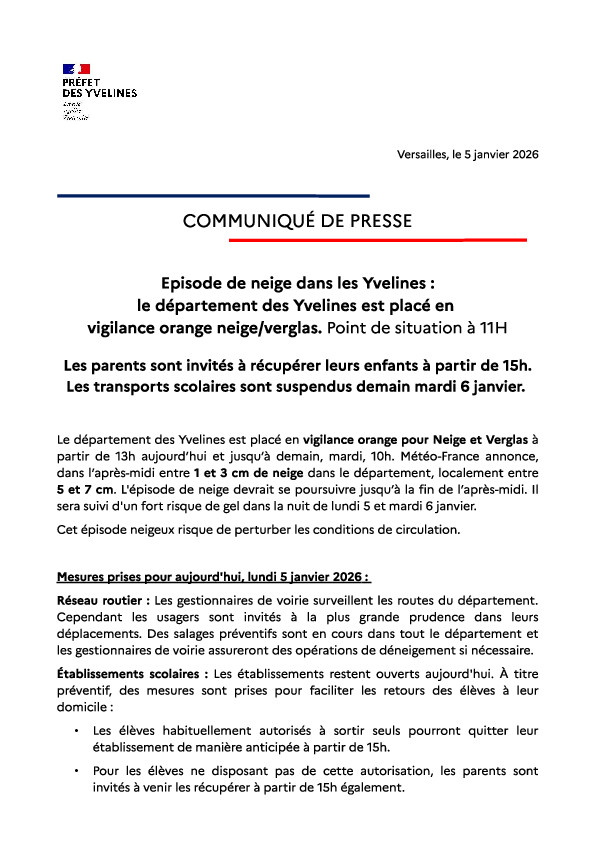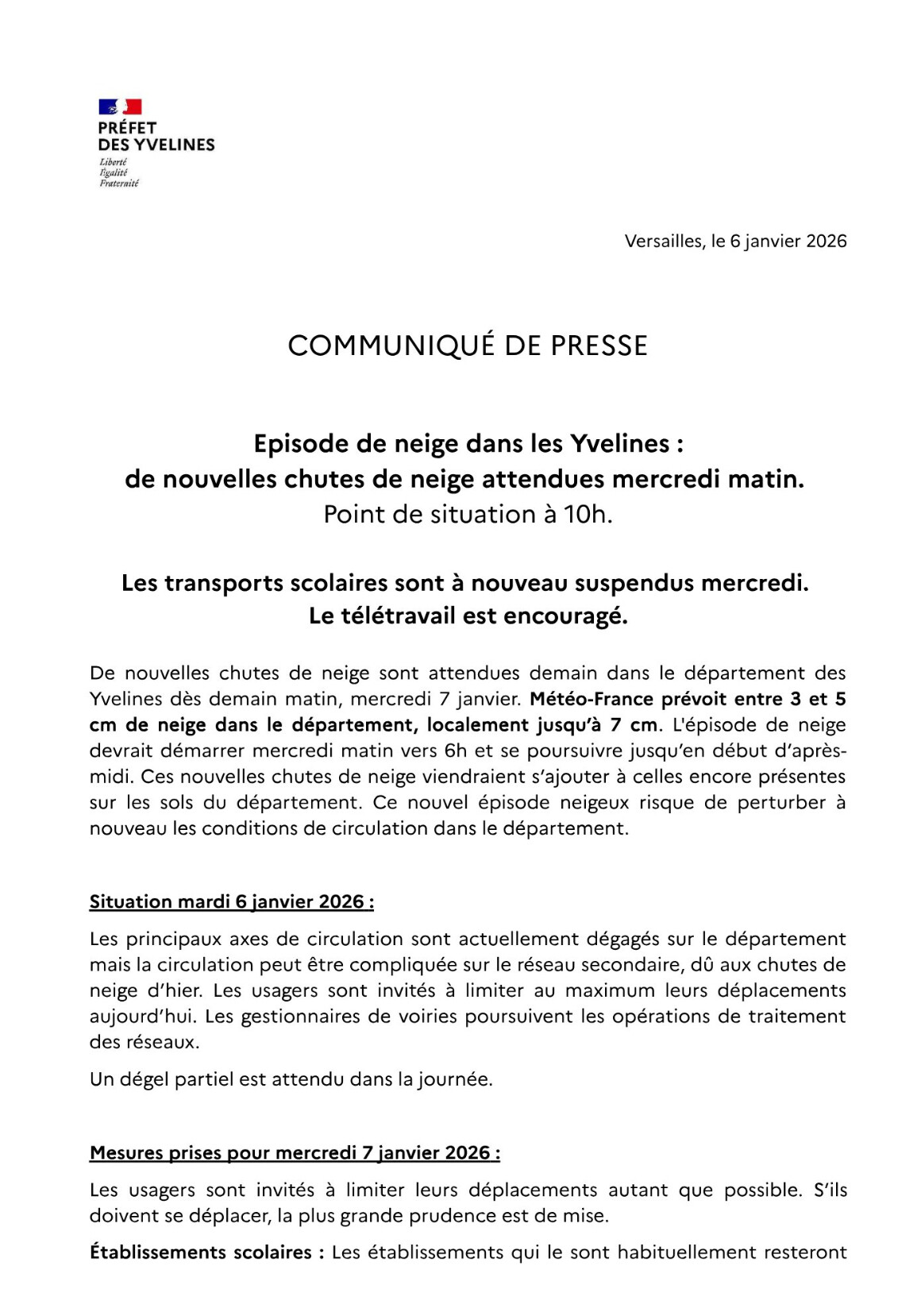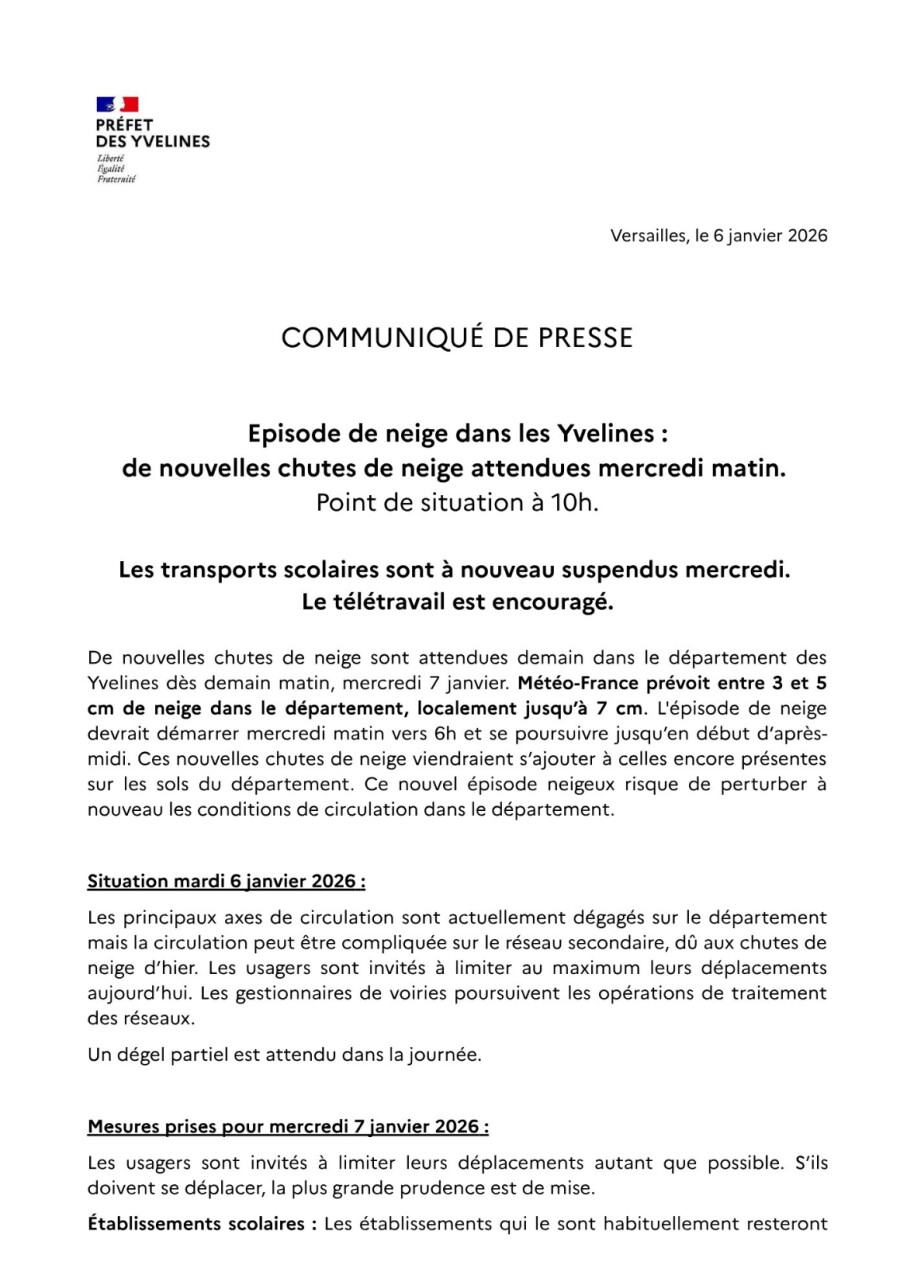 🌨️Un nouvel épisode de neige est attendu sur le département des Yvelines mercredi matin (3 à 5 cm, localement jusqu'à 7 cm).