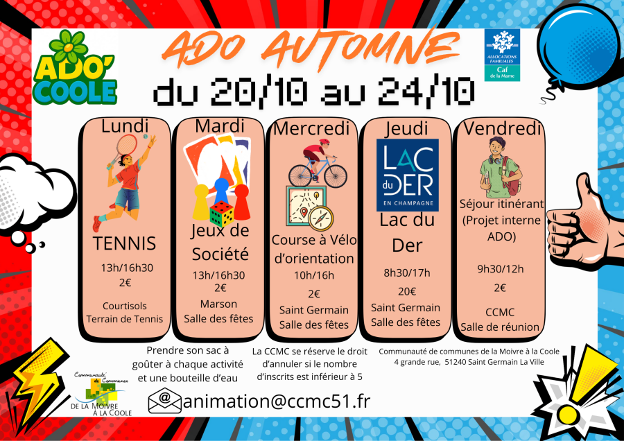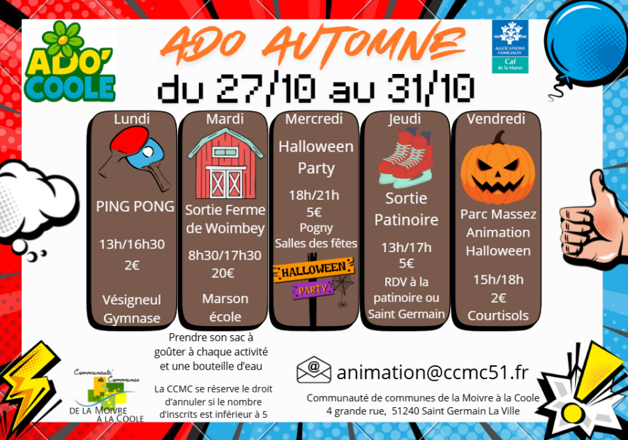 La CCMC organise des animations pour les jeunes de 11 à 17 ans pendant les vacances scolaires d'octobre 2025.