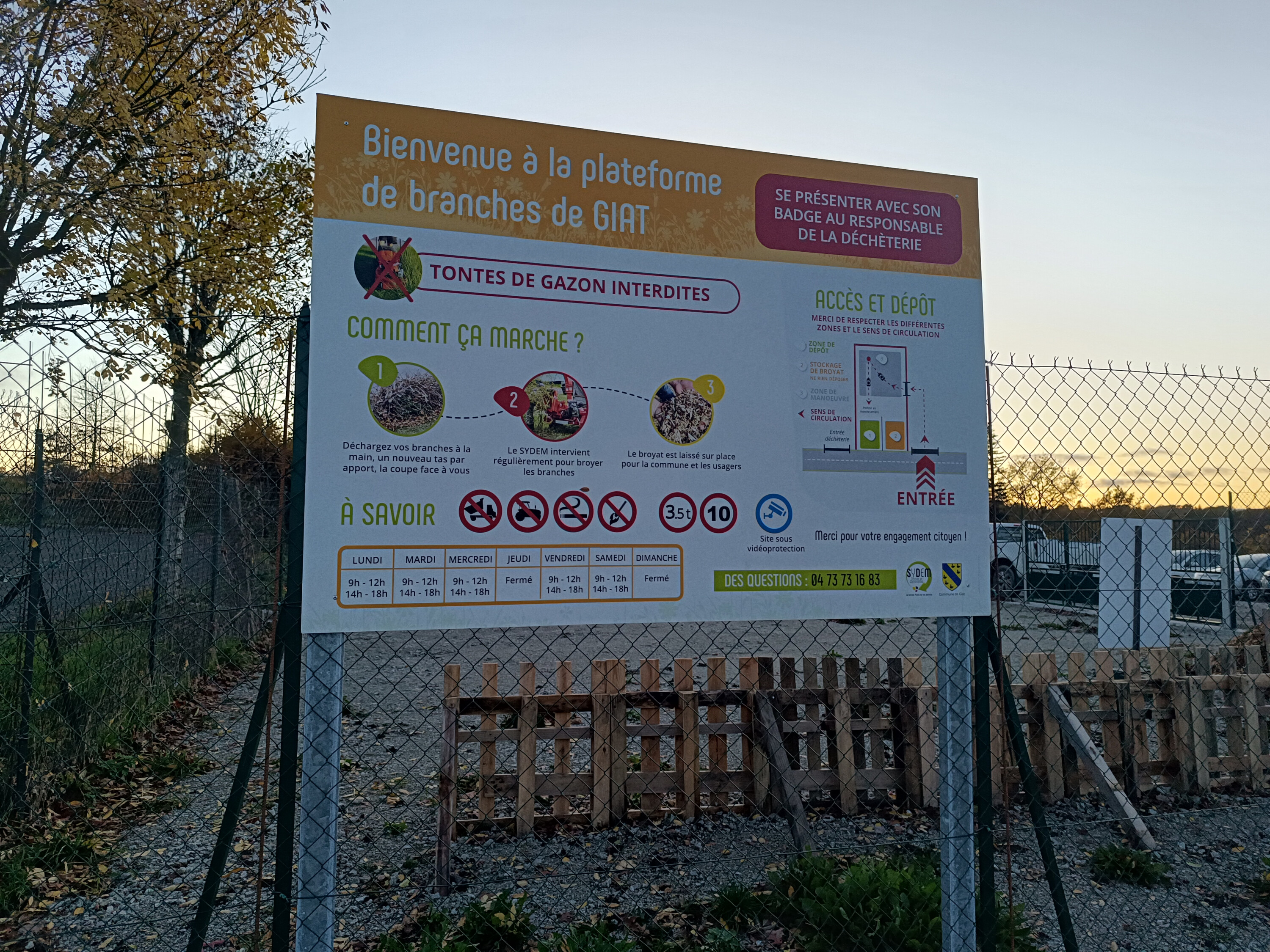 🍀 Cette plateforme peut accueillir vos tailles de branches ( jusqu'à 15 cm de diamètre). Une fois pleine, nous interviendrons à l'aide d'un broyeur à végétaux et laisserons le broyat sur place