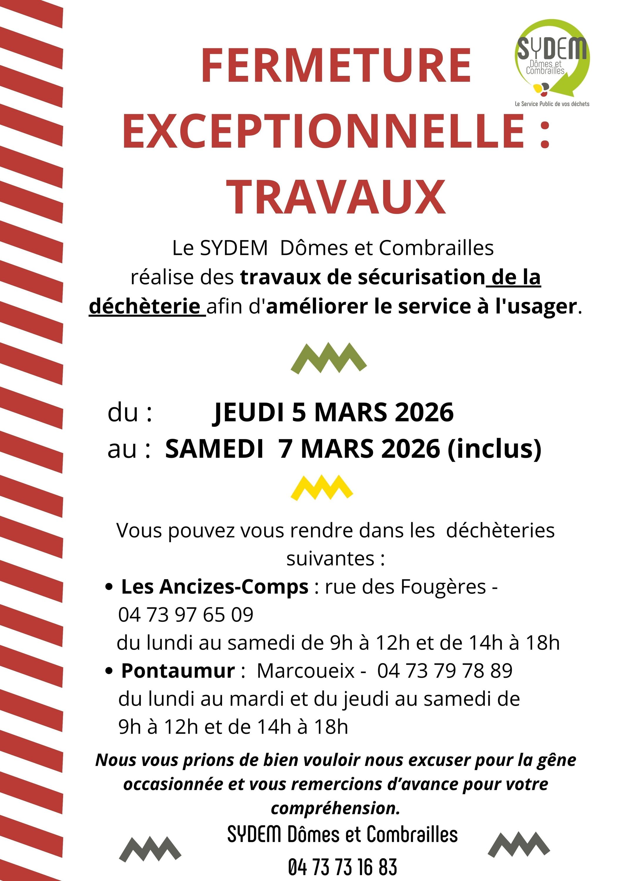 📅La déchèterie sera exceptionnellement fermée du jeudi 5 mars au samedi 7 mars inclus.