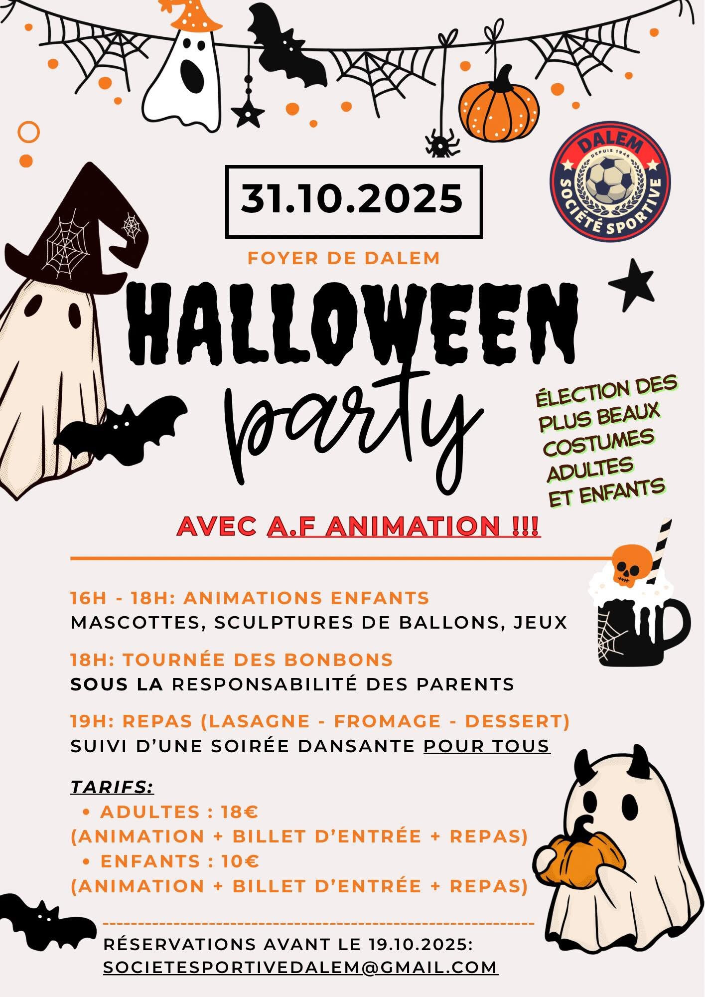 La Société Sportive de Dalem organise sa traditionnelle soirée Halloween! Ne tardez pas à réserver 🎃