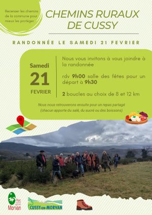 La commission "Chemins ruraux de Cussy" organise une randonnée le samedi 21 février 2026
