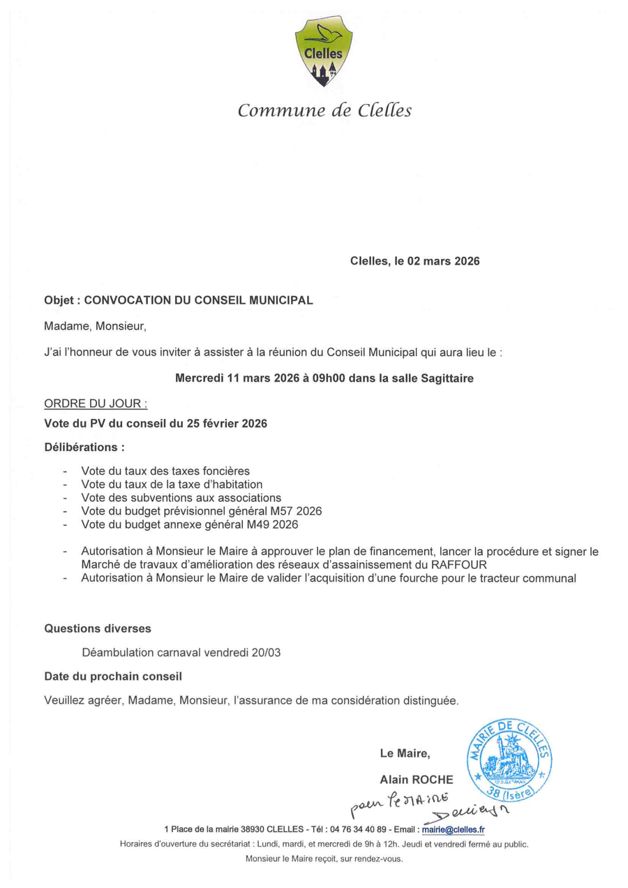 - Ordre du jour ci-joint consultable également en mairie -