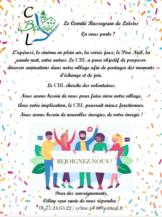 Le CBL a besoin de vous pour continuer à faire vivre notre village.