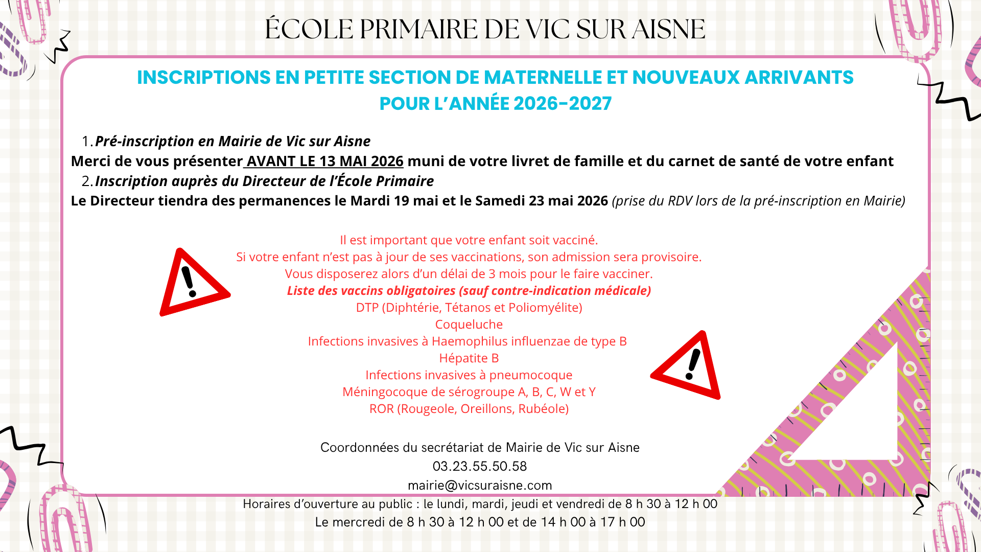 ✅️Les coupons d'inscription sont disponibles en mairie de Montigny-Lengrain, à compléter et déposer avant le 15 mai 2026