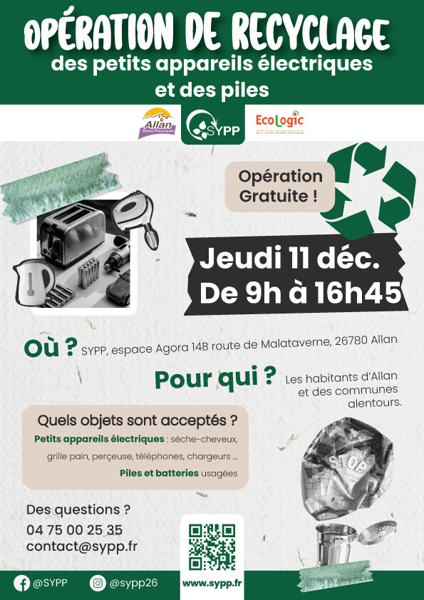 vous propose une opération de recyclage de vos petits appareils électriques et piles.