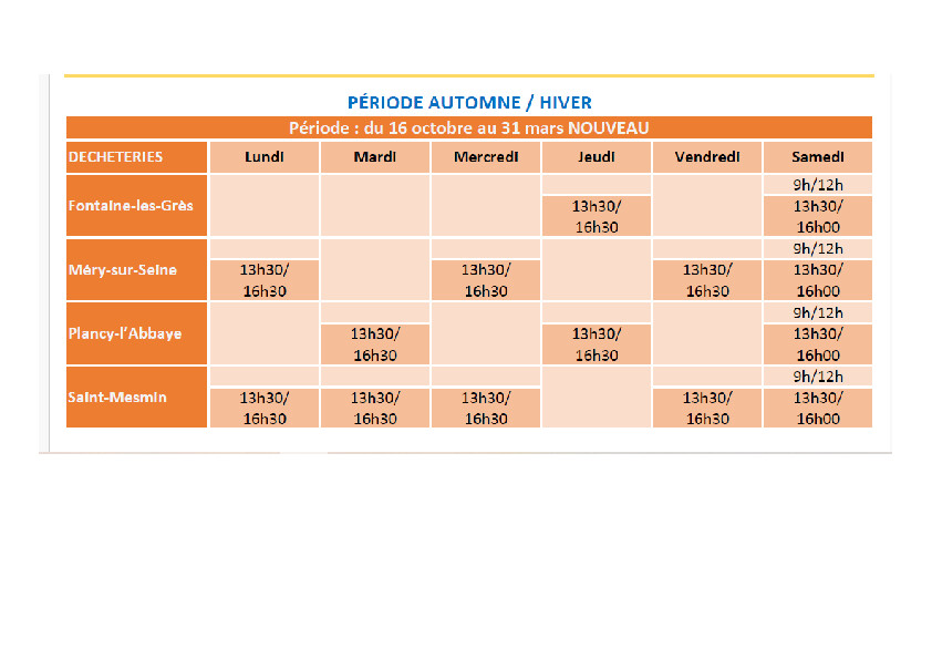 et à la déchèterie de Plancy l’Abbaye route de Champfleury