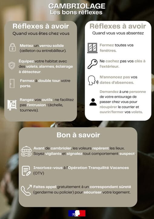 Ne pas laisser portes et fenêtres ouvertes même pour une absence de courte durée